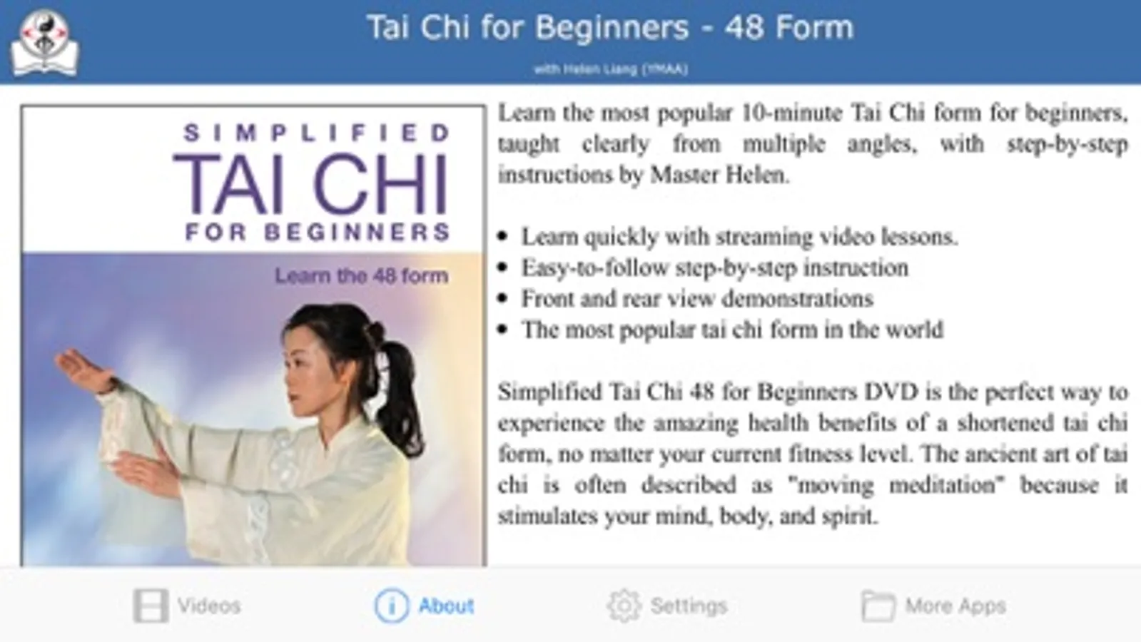 The simplified 48-posture form is taught and demonstrated in detail by Master Helen Liang in short, easy-to-follow sections. This popular form is shown clearly from multiple angles, with step-by-step instructions.
