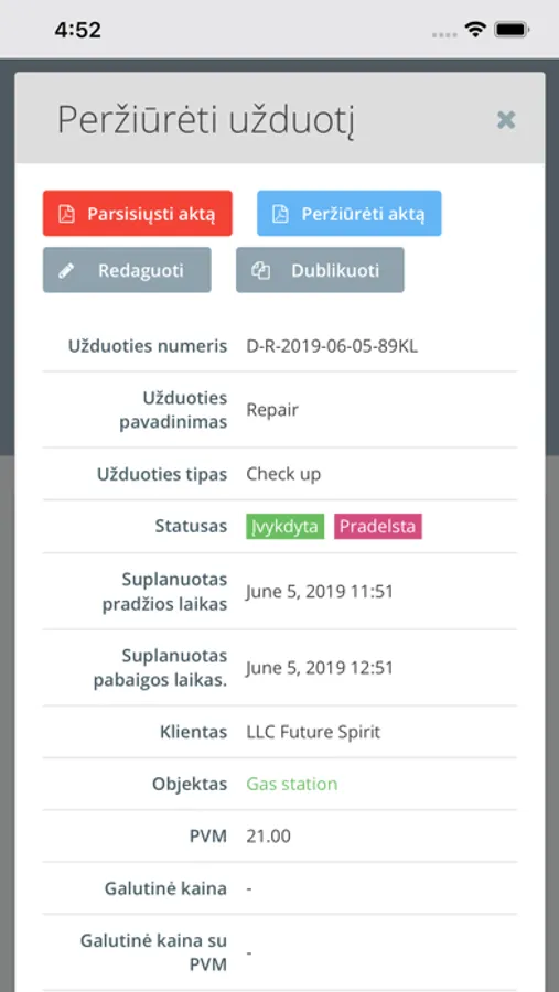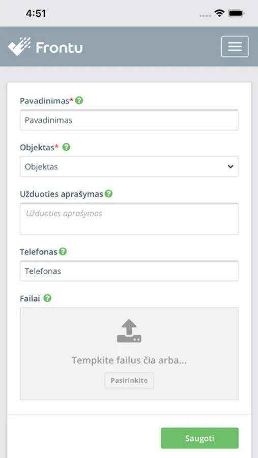 The customer platform is an online Frontu (formerly Tasker) account with a separate log-in, which can be provided by the Frontu administrator or another responsible person to users with the Customer role.