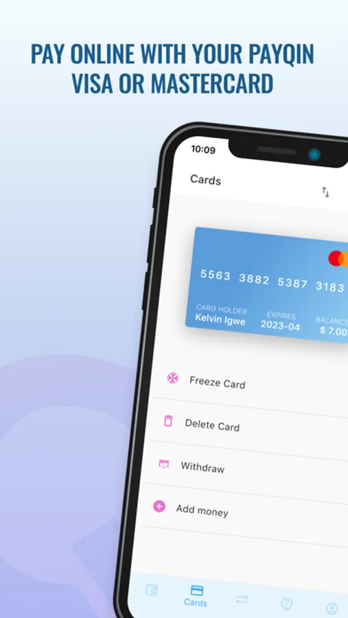 PayQin Visa or Mastercard can be recharged using Mobile money.
