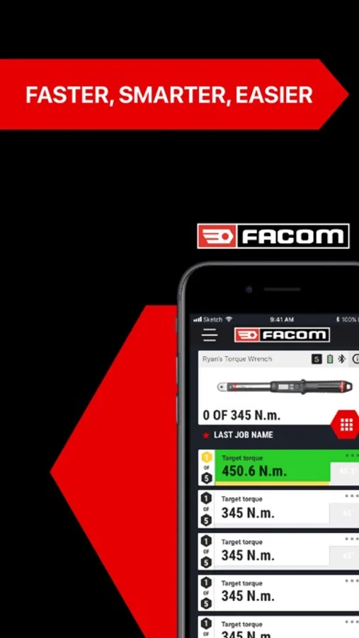 With the Facom App, take control of your Smart Torque wrench and set quickly target torque, help reduce errors, and record measurement for audit. Set values, recall favorites, and generate reports.