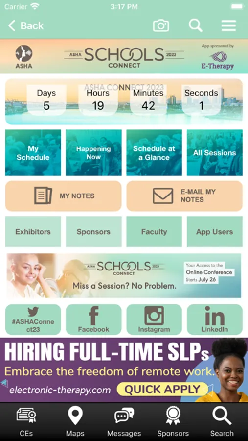 The ASHA Connect mobile application allows you to view the schedule, poster abstracts, exhibitors and speaker details from the conference. Users can take notes adjacent available presentation slides and draw directly on slides inside the app. Note-taking is also available in the Exhibitors module.