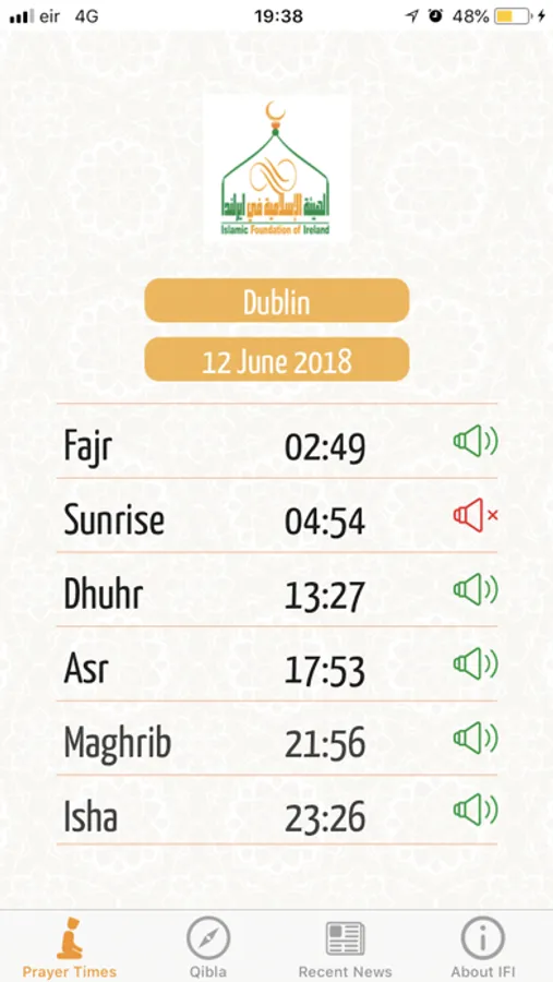The Islamic Foundation of Ireland app provides the most accurate prayer timetables to use within 12 major Irish cities/towns. Choose which prayers to receive adhan notifications for.