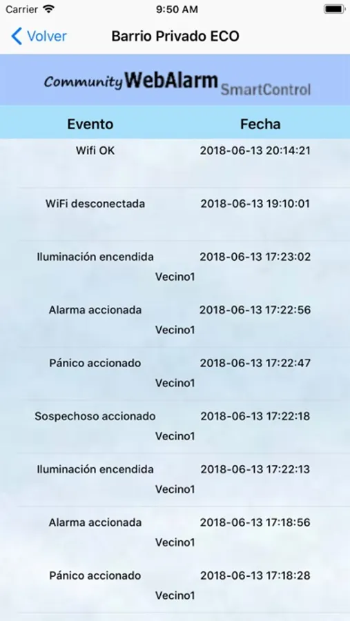 Cada vecino tendrá la aplicación personalizada desde la cual podrá enviar aviso de pánico silencioso, disparar la sirena de alarma general o sirena de merodeo (sospechoso), generando avisos a todo el grupo vecinal y también podrá encender reflectores para iluminación del predio.