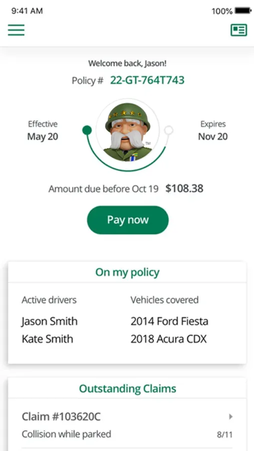The General’s mobile app is here to help you manage your policy anywhere, at any time. Whether you need to obtain a quote for car insurance, make a payment, view your ID Card(s), or submit a claim; The General’s mobile app makes it easy for you!
