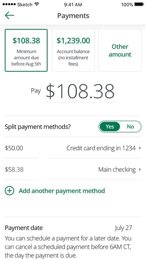 • Make a payment, schedule a payment, split a payment across different payment methods, or even pay in cash (Powered by PayNearMe)!