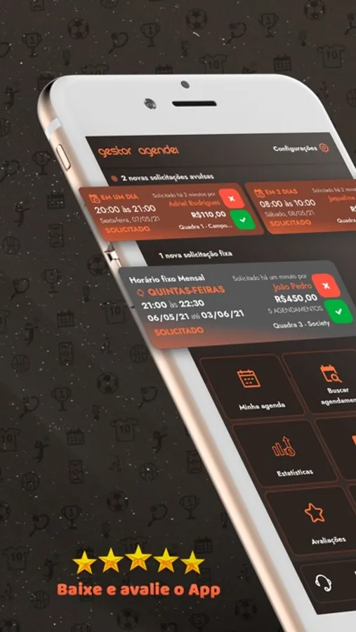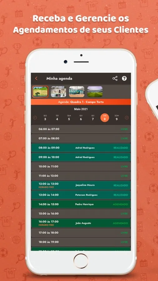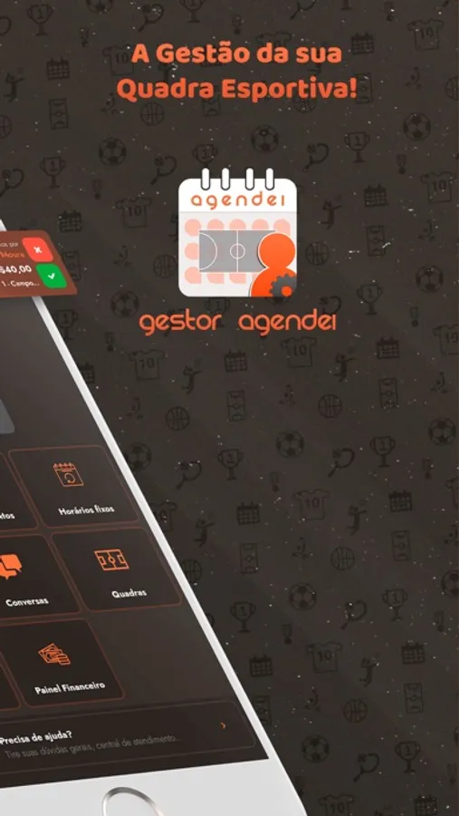 Tenha na palma da sua mão todo controle das suas quadras e ainda ofereça a comodidade para seu cliente agendar pelo App Agendei Quadras.