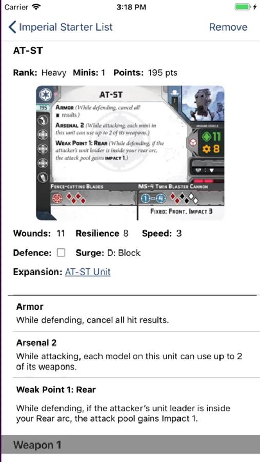 - Filter expansions, troopers, vehicles, upgrades, and commands by personal collection when building your army