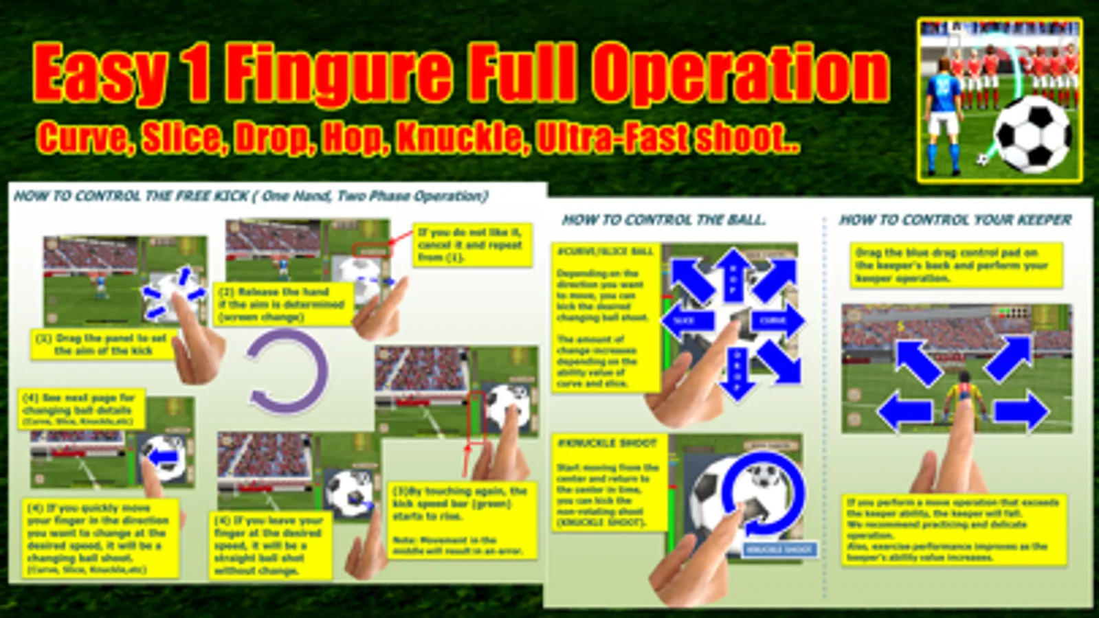 (2) You can easily kick free kicks freely with one finger