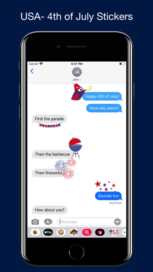 To use stickers in a conversation simply tap the sticker, which will place it in the text field and allow you to send it like a picture. The real fun happens when you use the second option: press your finger on a sticker, drag it out of the box, and place it on an earlier entry in your message history. These options allow you to annotate text, photos, or other stickers that have been sent in the past with your sticker of choice.