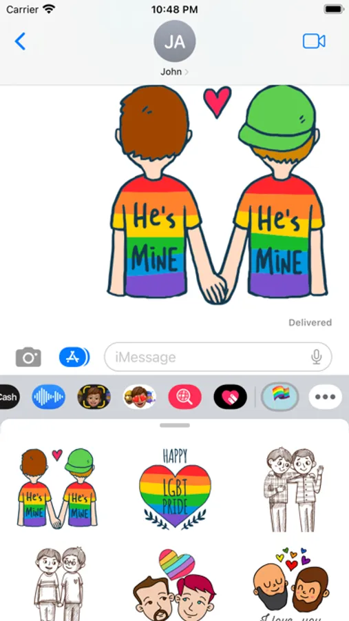 He's Mine Gay Stickers is great for show off your gay pride, show your love to your partner, say ‘Hi’ with loving message through iMessage.