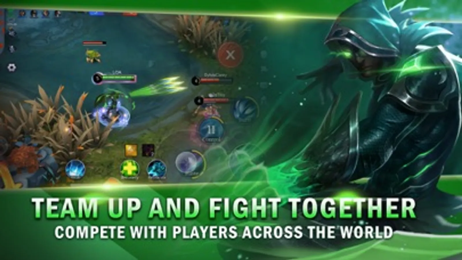 LoA needs lots of teamwork. Each team has five players. Each player has to select a role to play with, such as Tank, Healer, Shooter, Mage, Ganker. Players must cooperate to beat the enemies.