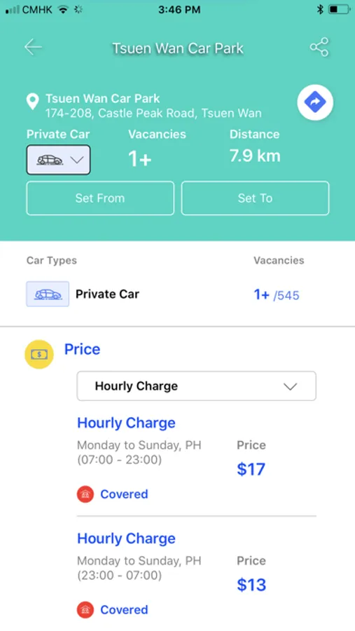 4. Simply click the carpark on the parking dashboard and pin on the map to reveal full car park details including parking rate, parking privileges