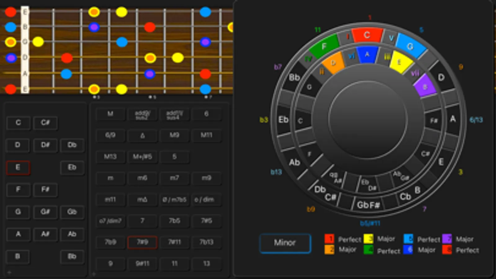 - Unique through the use of (the rainbow) colours for the intervals of the chords