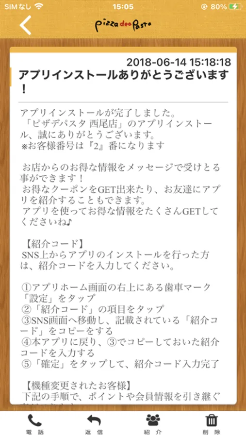 ピザデパスタのアプリをSNSを通じてお友達に紹介する事ができます。