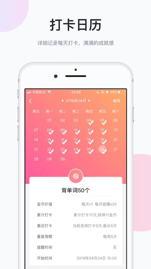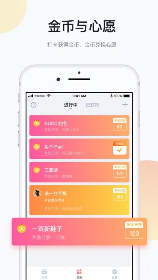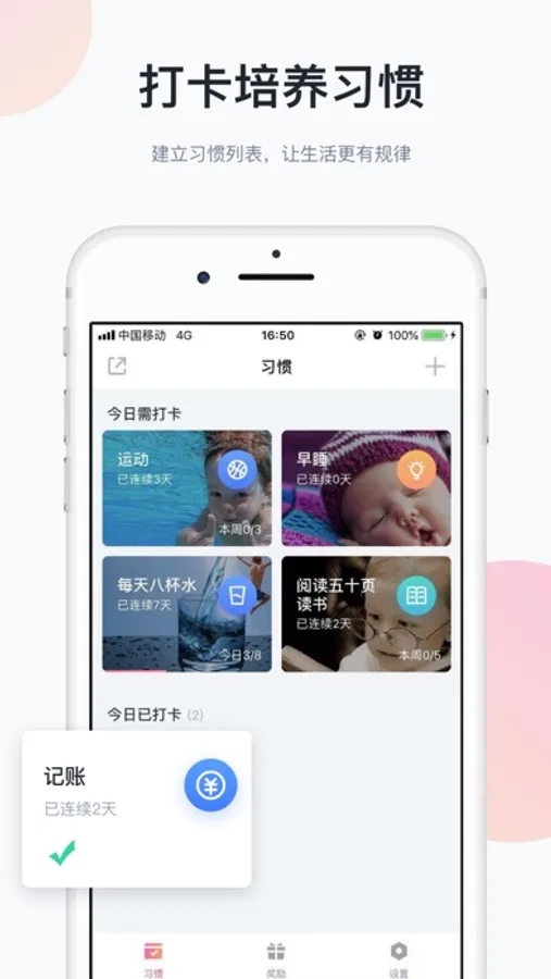 2, according to the habit of rewards - set the goals that need to be adhered to and the rewards after completion, reward yourself after the continuous punch card