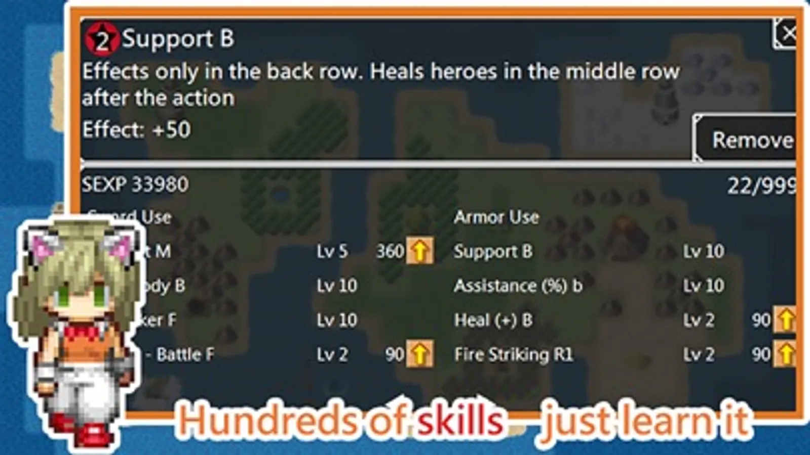 1, 600+ Skills ! A variety of types of skills, working by fighting position, adding hero's abilities, working when attack, working after the end of the battle. Hundreds of skills can be chosen