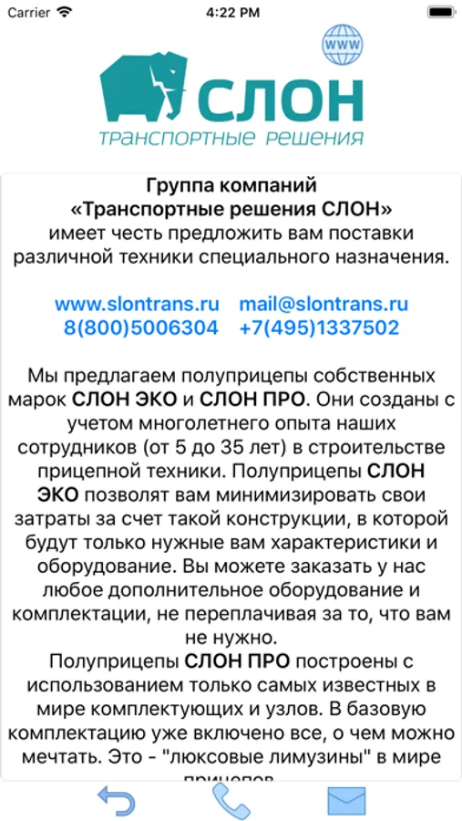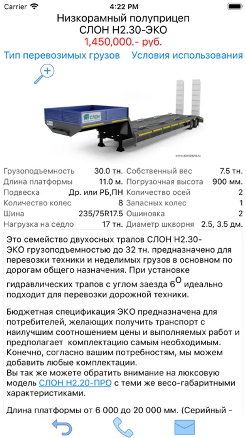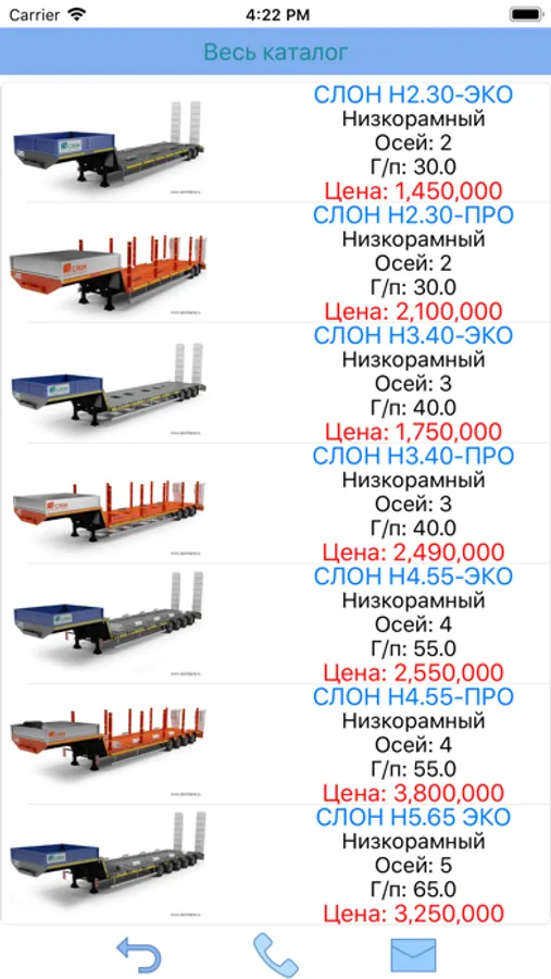 Приложение содержит обновляемый каталог тяжелых полуприцепов СЛОН грузоподъемностью от 10 до 100 тонн с ценами и техническими характеристиками.