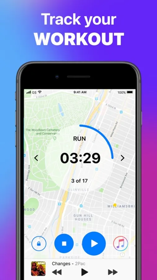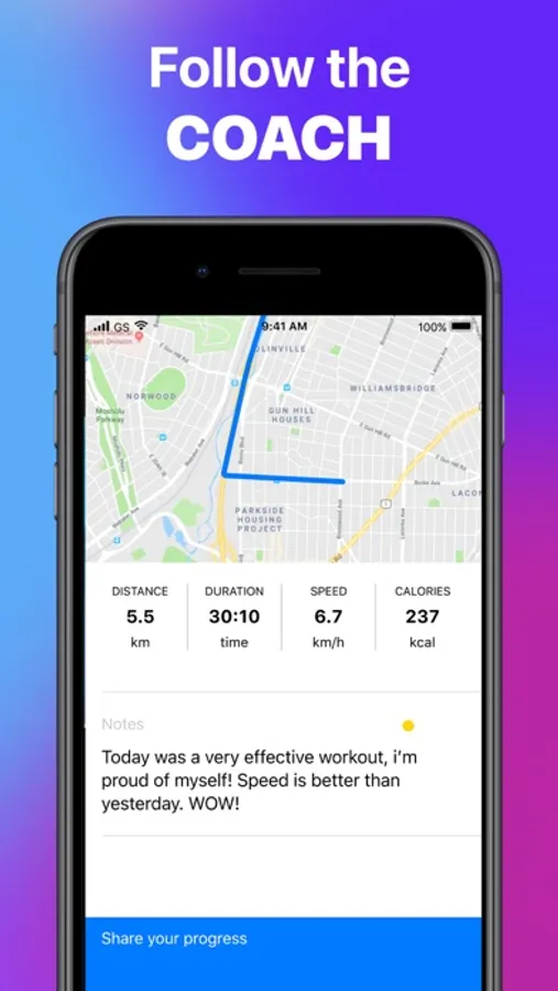 - Real-time map with your distance, calories, time and duration