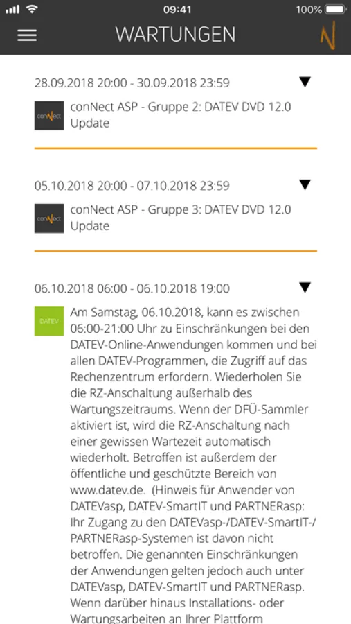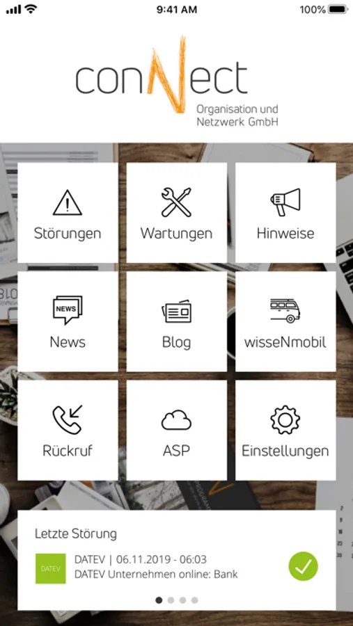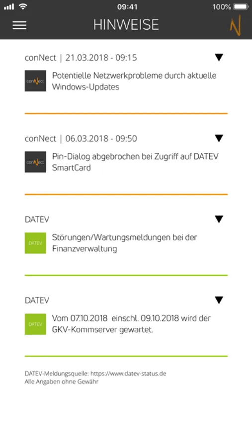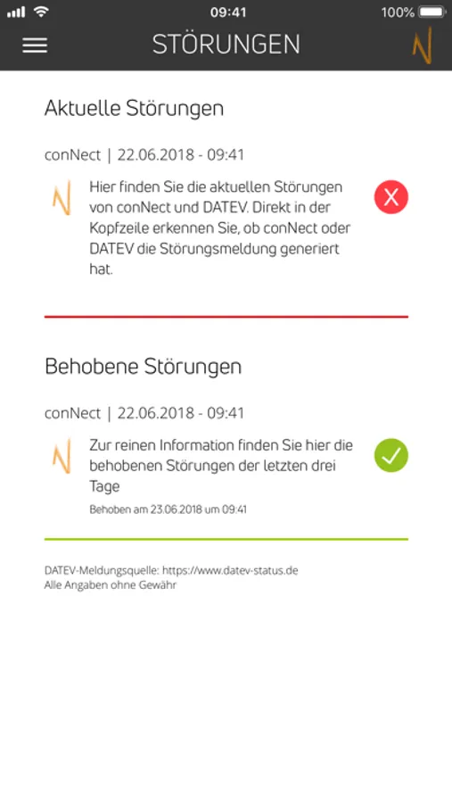 Mit der conNect Info App erhalten Sie automatisch immer aktuelle Störungs- und Wartungsmeldungen der conNect Organisation und Netzwerk GmbH und der DATEV eG sowie News aus den Bereichen ASP, DATEV, Kanzleiwelt und Technik direkt per Push-Notification auf Ihr Smartphone oder Tablet.