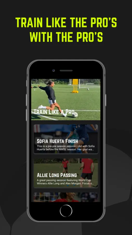 Our goal is for you to train like a pro, so you can become a pro! That’s why each soccer practice video session is broken down into a warm up, juggling, footwork and then drills for that sessions topic! Not to mention that the sessions feature professional players like Alex Morgan, Jordyn Listro, Rachel Daly, Kristie Mewis, Johnny Markey and more!