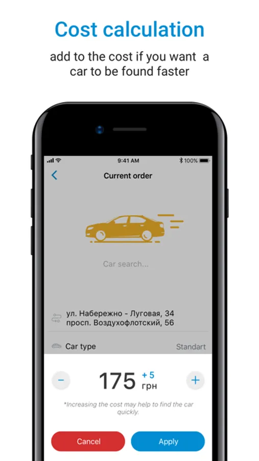- the ability to call cars of different classes (standard, comfort, station wagon, minibus);