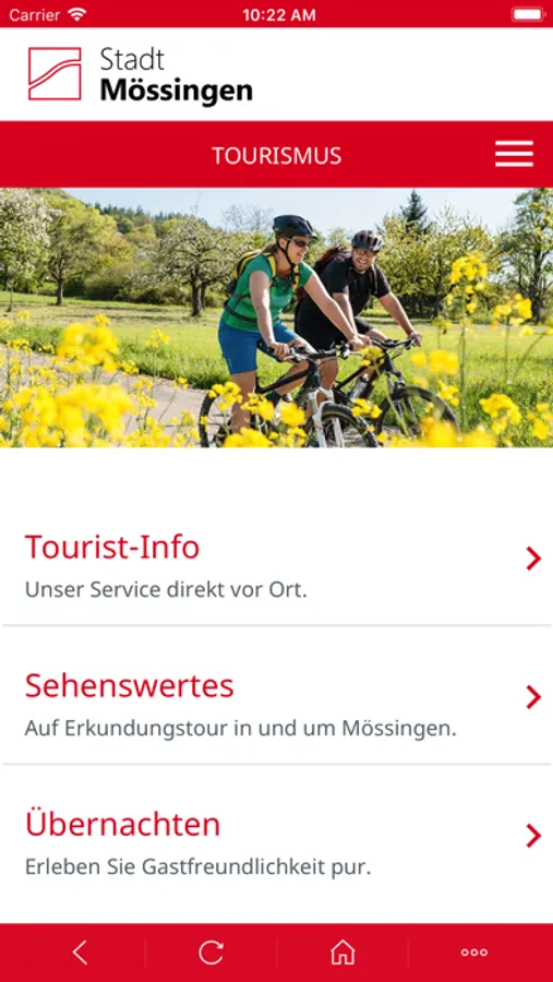 Entdecken Sie Mössingen – die lebendige Stadt am Albtrauf. Die App informiert Sie unter anderem über aktuelle Veranstaltungen, Nachrichten und Übernachtungsmöglichkeiten.