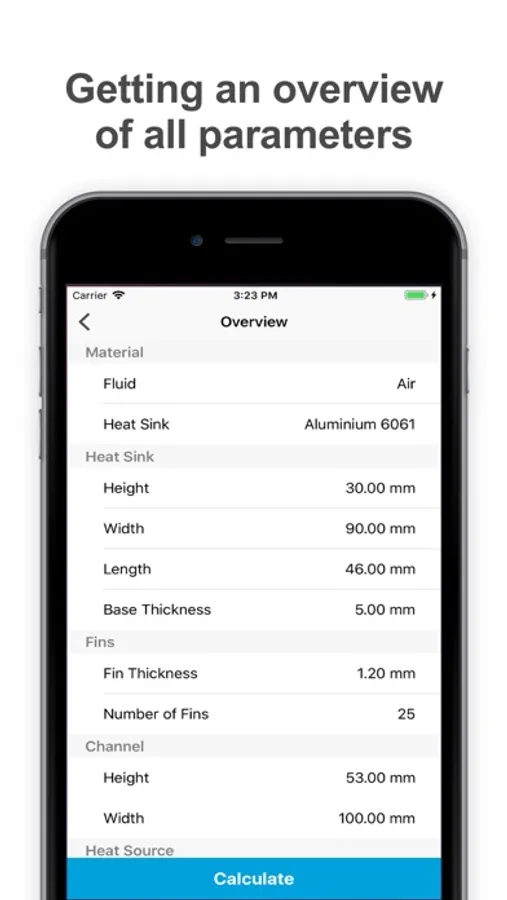- Getting an overview of all design parameters before calculating