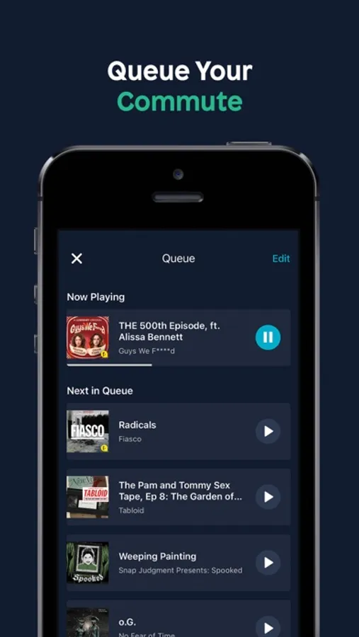• Bookmark individual episodes, with drag and drop sorting to listen how you want.