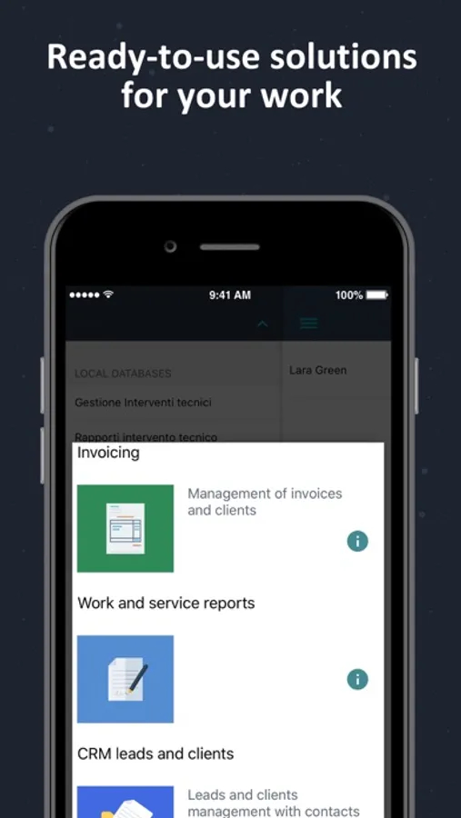 Choose among more ready to use solutions or create your ideal management app, using Desktop editor, that allows you to personalize and to modify both the interfaces and software function.