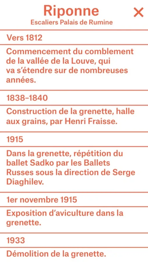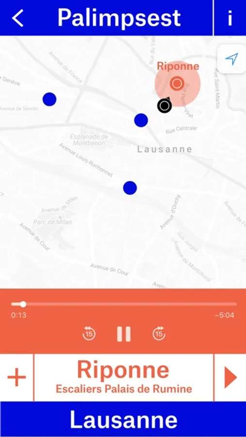 Palimpsest takes a choreographic look at the history of different places. It explores the poetic potential of the language of audio-description. It’s a collection of geo-tagged sound compositions that invite the listener on a guided tour. The audience members become actors in the movement, projected in spite of themselves onto the stage of an ephemeral theatre. Although the dancers will be physically absent their subtle evocation within the hyper-realistic narration will lead them to gradually materialize in the spectators’ imaginations - like phantoms haunting the surrounding landscapes. Physical proximity and intimacy are fundamental aspects of the piece’s concept and composition, which means that the audience will perceive the presence of the physically absent performers as something very much alive.