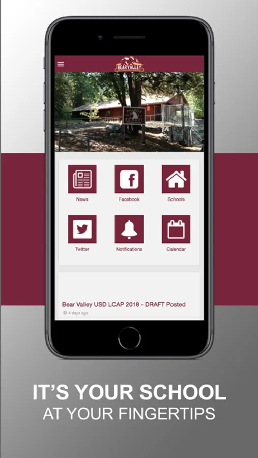 With the Bear Valley Unif School Dist mobile app, your school district comes alive with the touch of a button. Easily navigate through current news and events or check out the latest updates with social media. Quickly retrieve contact information, sporting scores, lunch menus, and more! It’s your school district available at your fingertips.