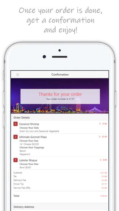 Our order tracking system helps keep you informed about where in the process your order is at. We try to keep prep and delivery times accurate, so you aren't kept waiting for your food. We offer push notifications so that you can stay up to date with real-time order updates. Also available is a real-time order tracking system that lets you see where your delivery is, using our app.