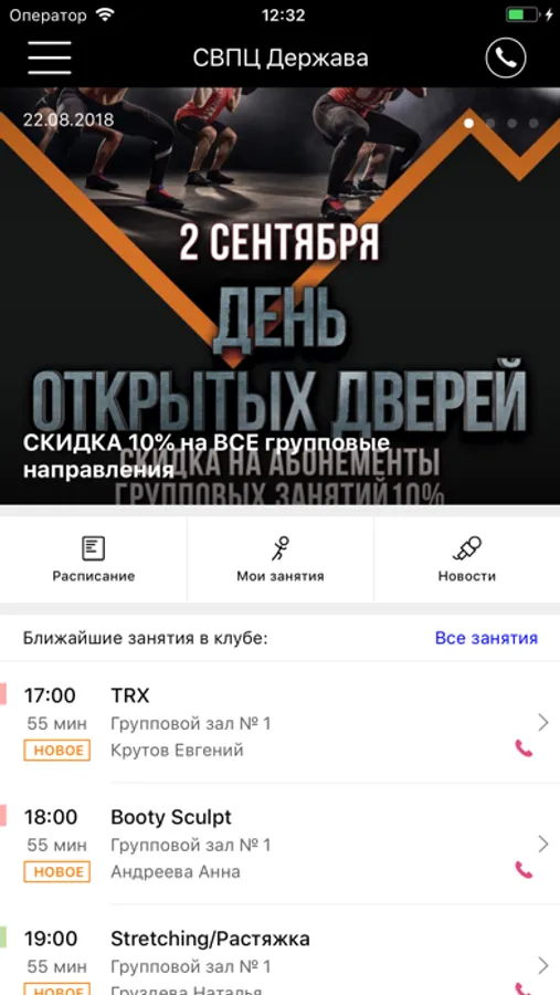 С помощью приложения вы можете следить за новостями, расписанием спортивного центра, оперативно получать информацию об изменениях в расписании и специальных предложениях.