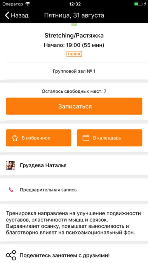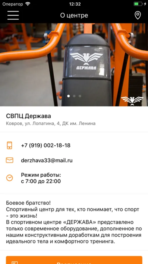 В приложении вас также ждет: программа лояльности, онлайн запись на персональные и групповые тренировки , удобная отправка заявок на заморозку и продление, интеграция с соц сетями!