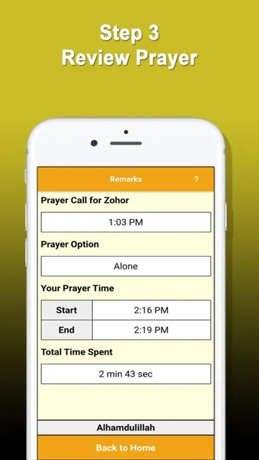 4. Allows you to record your actual prayer times, for your own self-analysis.