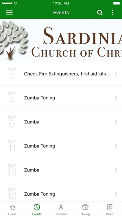 The Sardinia Church Of Christ app was developed with the Subsplash Platform.