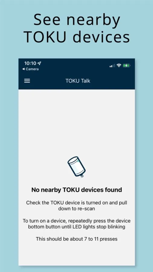 TOKU Talk can be used to talk to TOKU Systems devices, the T100Xs, to get immediate feedback about whether or not it is working as expected, using your iPhones Bluetooth.