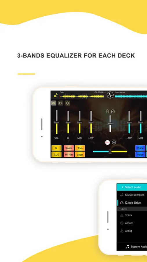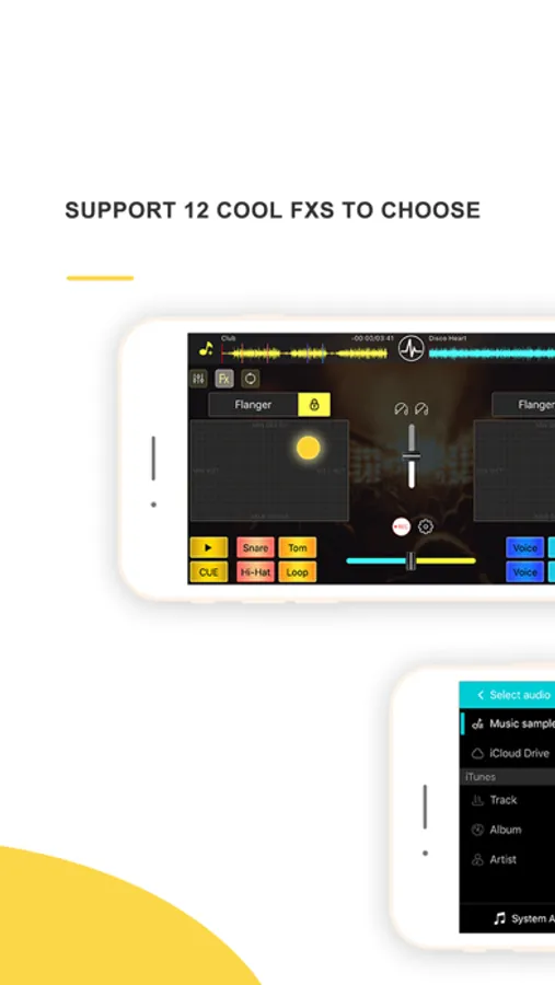 Integrated with your iTunes music library and iCould music, DJ Mixer studio gives you direct access to all your favorite songs and playlists instantly. You can make crossfade effects between two tracks seamlessly and change the tempo & pitch in real-time. Different built-in melodies & sound effects are also available to mix with your favorite music!