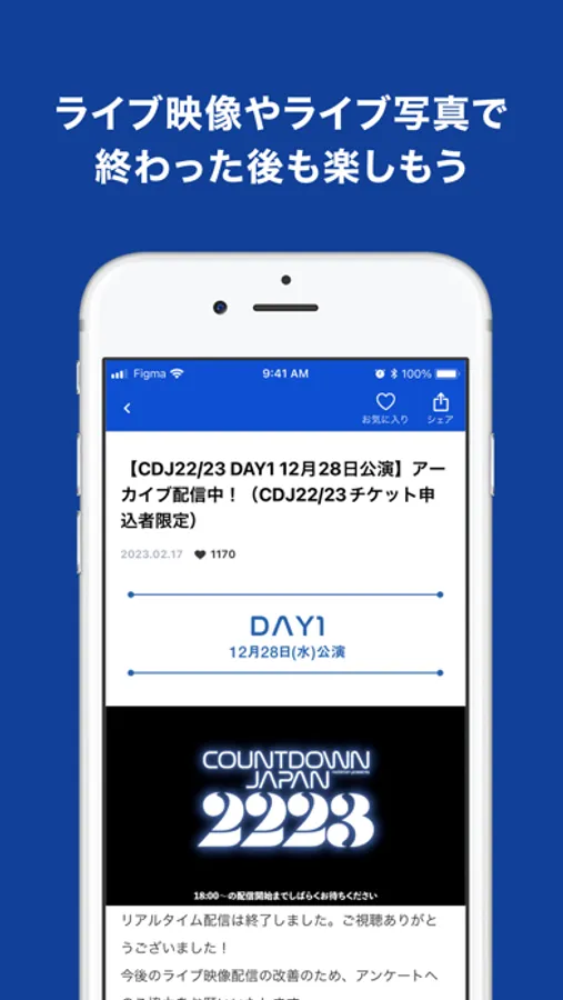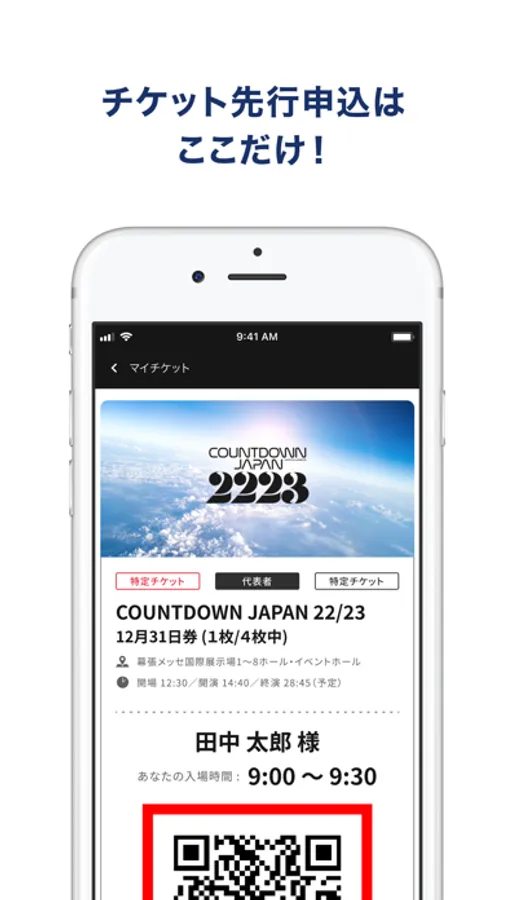チケットの先行受付から当日の入場までがすべて「Jフェス」アプリで完結!出演アーティスト発表やチケットの受付開始もプッシュ通知でいち早くお知らせします。