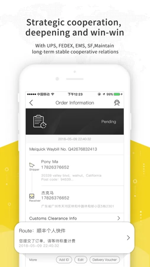 We integrate the demands of cross border e-commerce and resources of international air freight and port of entry, cooperate with related government departments, and maintain long-term and stable cooperation relationship with UPS, EMS, SF EXPRESS, and FEDEX, with which jointly devote to cross-border e-commerce and bring workable solutions for global logistics.
