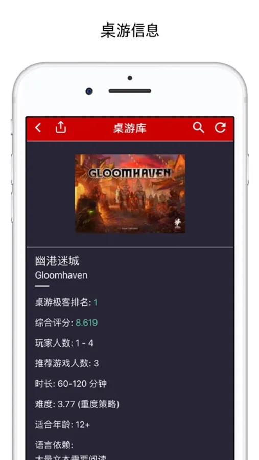 实时更新的桌游库,收录了上万款桌游,桌游排名保持跟BGG实时同步。