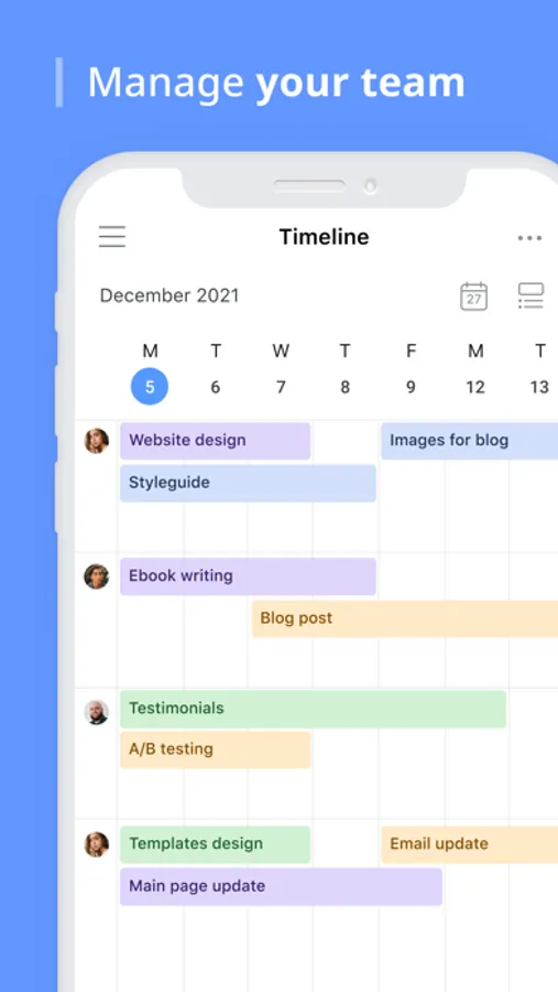 Visualize your team members on a timeline and see who is working on what. Check availability and assign new tasks for all the team even away from the desk in one work schedule calendar.