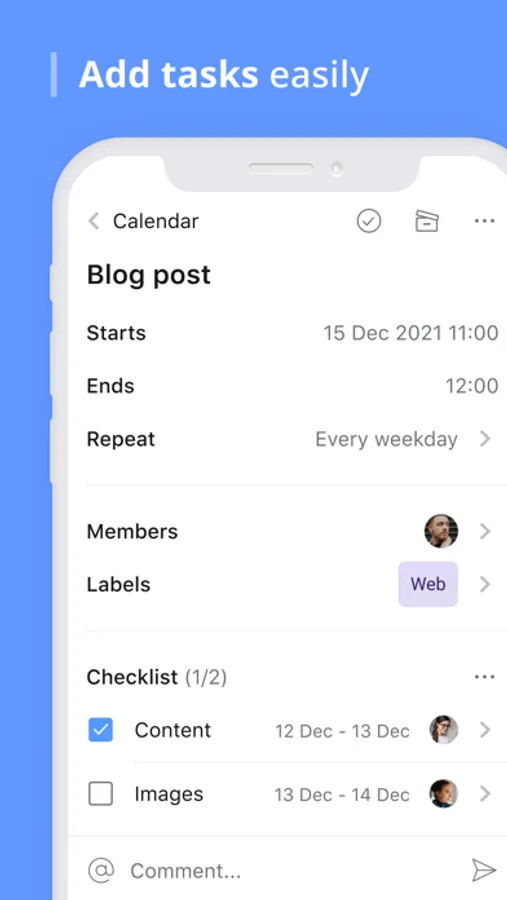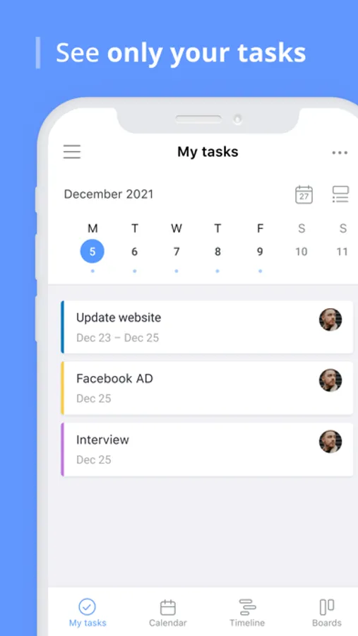View only tasks you’re responsible for in My tasks view. Connect Google or Apple calendar and get full control over your schedule.