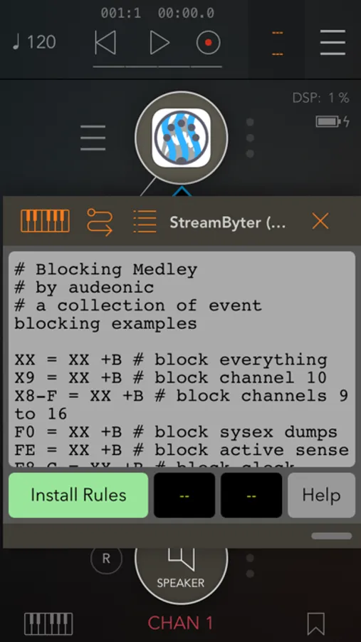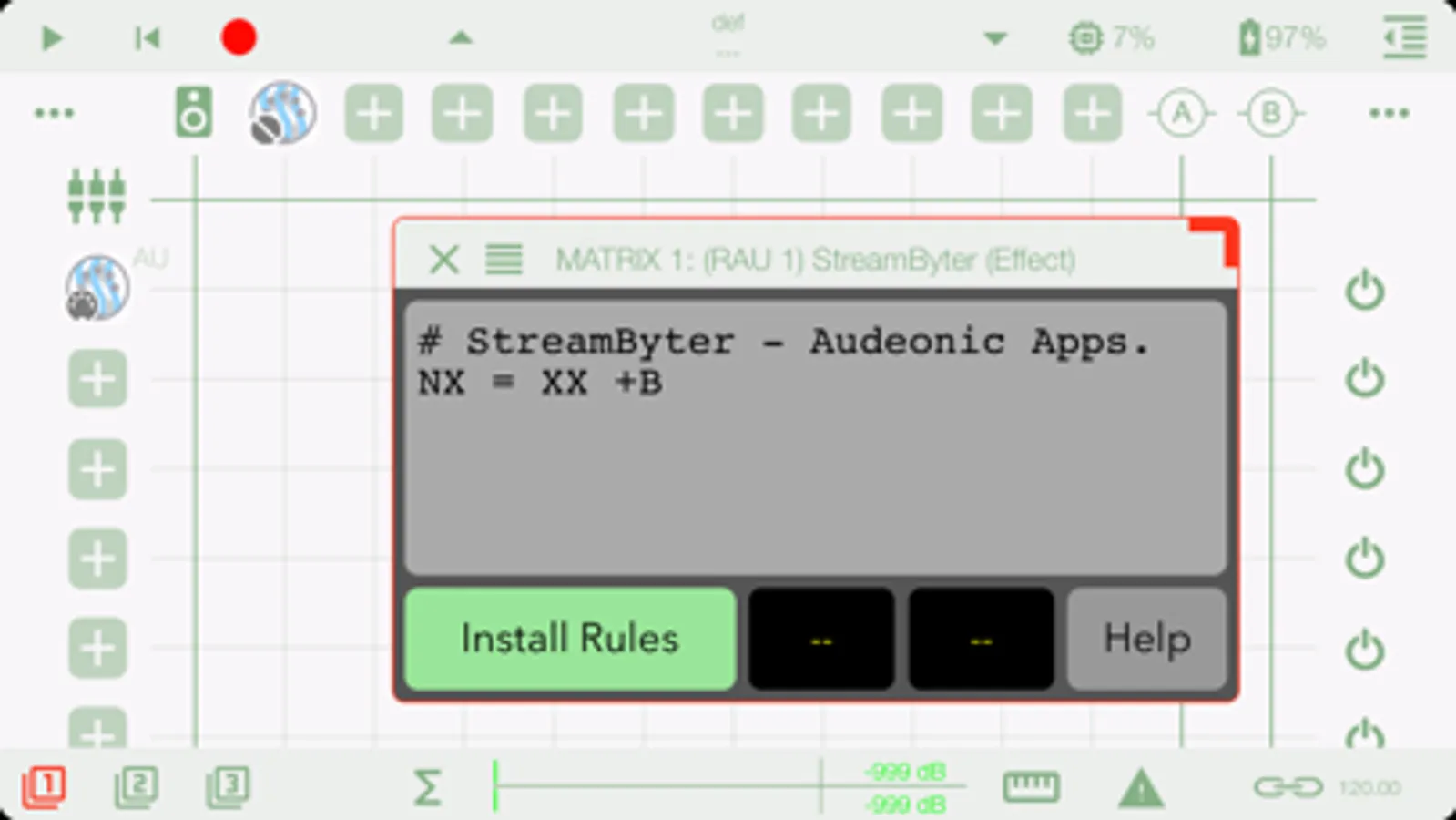 StreamByter is a plugin for creating custom MIDI effects with or without a GUI. It can be used as an Apple Audio Unit (AU) effect or as a standalone app connected via CoreMIDI virtual ports. StreamByter is ported from our acclaimed MidiFire MIDI processing environment.