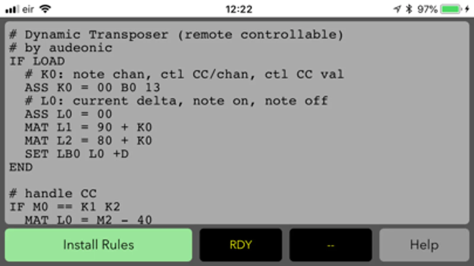 An iOS device (minimum iOS 11) and a suitable AU host app such as AUM, apeMatrix, Cubasis or Sequencism is required to use the AU variant. To use with CoreMIDI, a routing app like MidiFire is recommended and an iOS device with at least iOS 8 is required.
