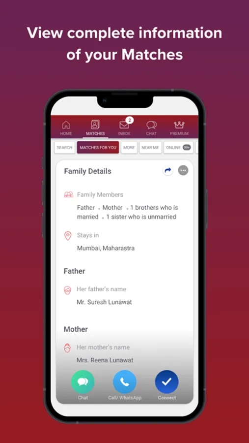 - Connect with your matches instantly on WhatsApp