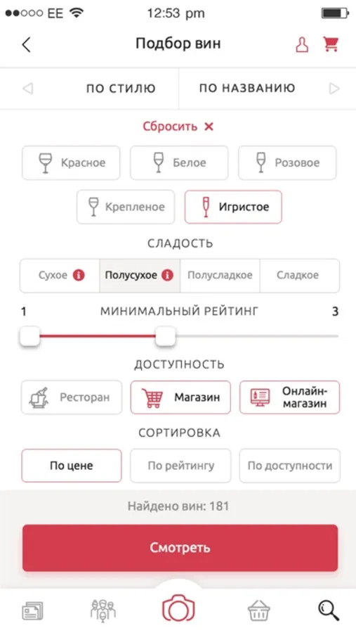 •Радел «Места продаж» предназначен для того, чтобы видеть, где можно приобрести вино. Доступен поиск по геолокации. Появилась возможность фильтровать ассортимент внутри магазина.