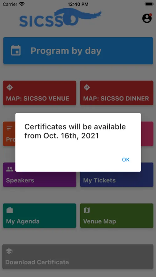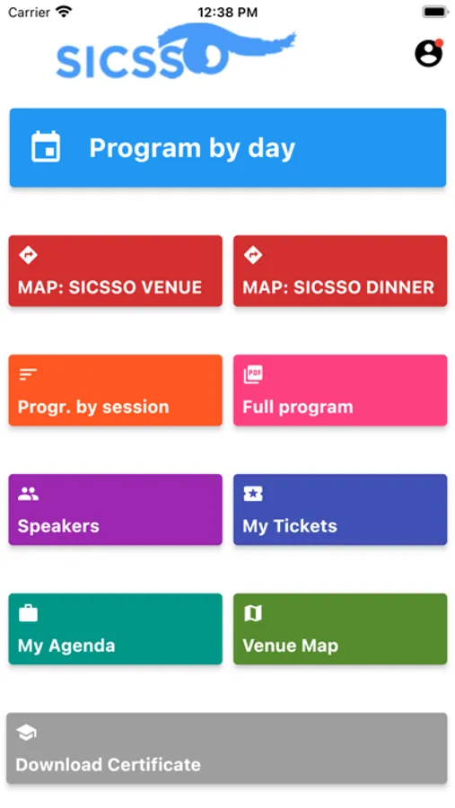 All congress participants will receive a badge with a QR code that will allow them to download the congress certificate, view the information related to their interventions (if entitled) or view the booked activities. Access to this area is free for all congress participants. By clicking on the person icon at the top right participants can scan their badge and access the protected areas (my tickets, my plan, PDF certificate). No purchase is available through the APP but you will have to address directly to the Congress secretariat.