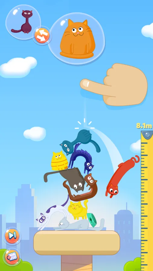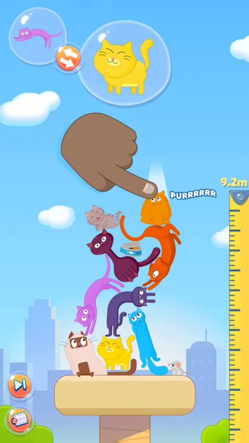 Rotate, position and release cats to make the tallest Cat Stack you can and score the highest points! If your cat falls off the tower, it’s game over for you and your kitty!