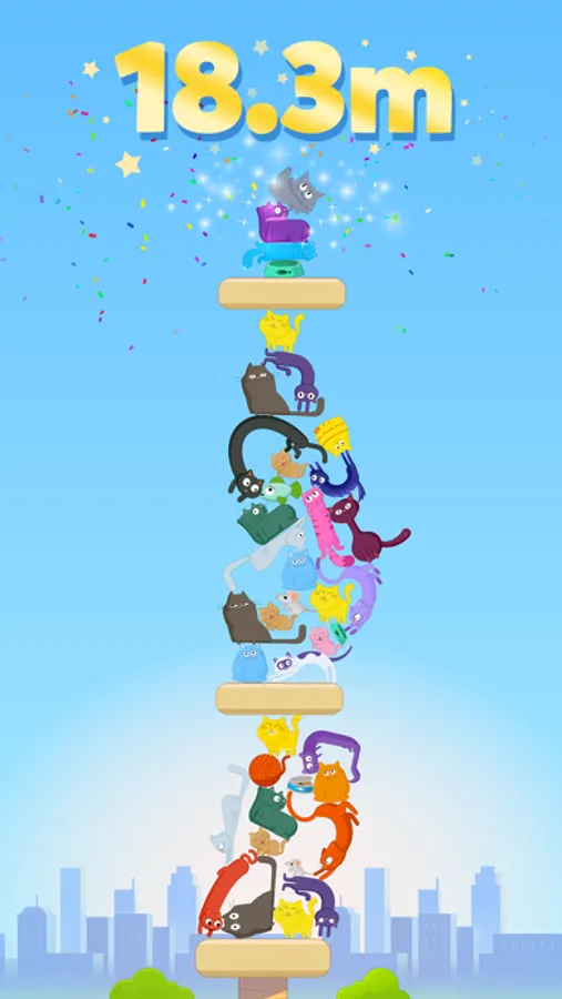 Do you love cats? Even when they are smelly, glowing or made of jelly?! Keep an eye out for all the distinctive cats with different effects - they might make your tower fall!